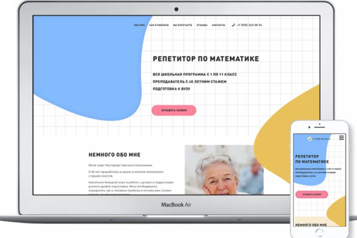 Разработка прототипа и дизайна для лендинга частного репетитора по математике.
