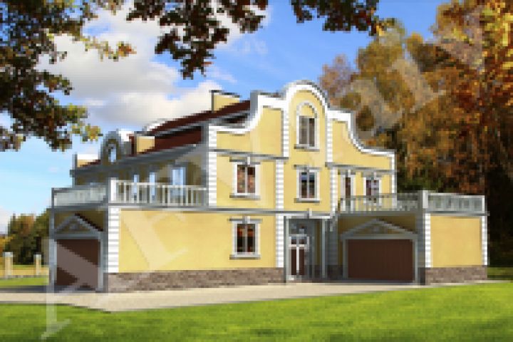 Эскизный и рабочий проекты коттеджа на 2 родственные семьи с общим входом, площадь 700 м2.