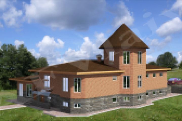 Эскизный и рабочий проекты. Коттедж в 4 уровнях, со встроенным гаражом в верхнем уровне. Участок ниже уровня дороги на 1,5-2м