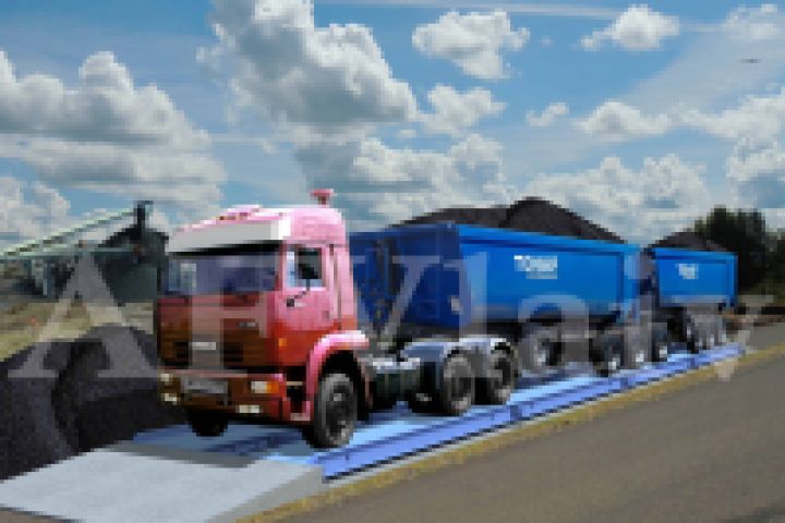 Изображение автомобильных весов с грузовиком на фоне угольного к