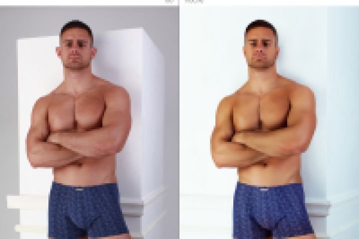 Задача - исправить фон, сделать торс модели более мышечным, подкорректировать внешность.