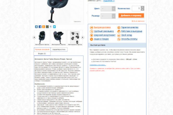 Полное заполнение карточки товара "Автокресло Aprica Fladea". Описание, особенности, фильтры, технические характеристики. Добавлено 5 обработанных фото.