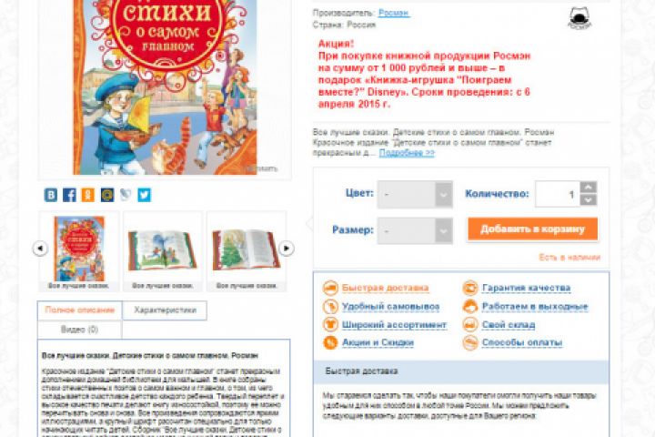 Полное заполнение карточки товара "Все лучшие сказки. Детские стихи о самом главном. Росмэн". Описание, основные характеристики, фильтры. Добавлено 3 обработанных фото.