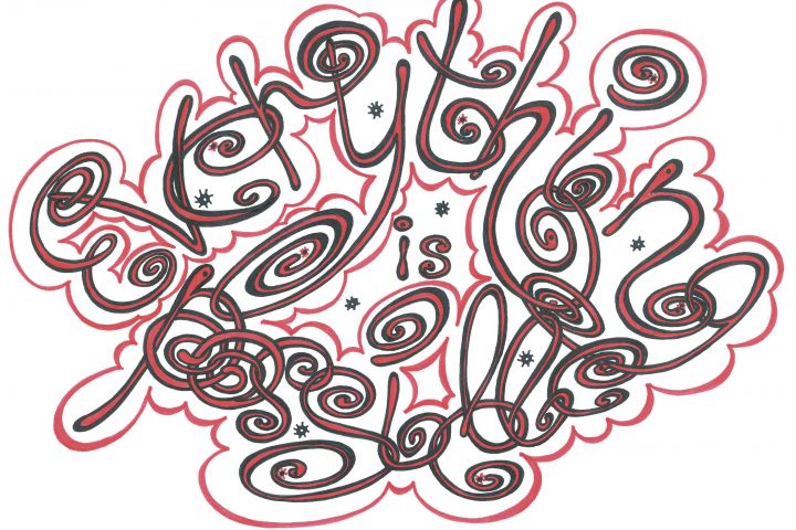 Positive contrasting black and red graffiti lettering from interwoven letters. Affirmation for online communication, for the original design of a website or account, to create a personal brand