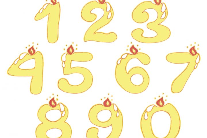 Festive ornate numbers for writing a significant memorable date. The font in the form of lighted candles with lights and sparks will bring joy to children and adults. Creative author's graphics.