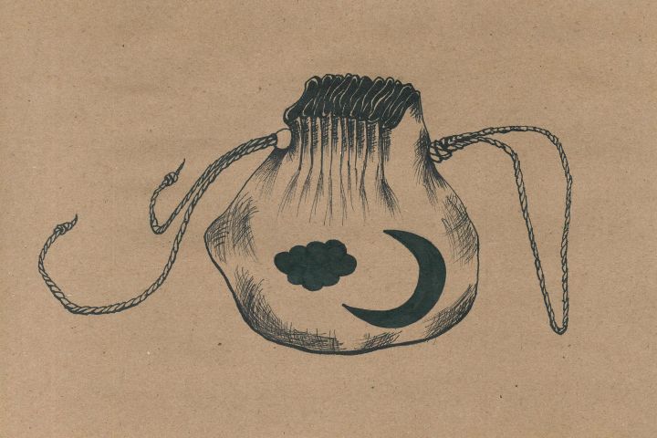 Мешочек для табака или мелких предметов, видна текстура ткани, плетение верёвки