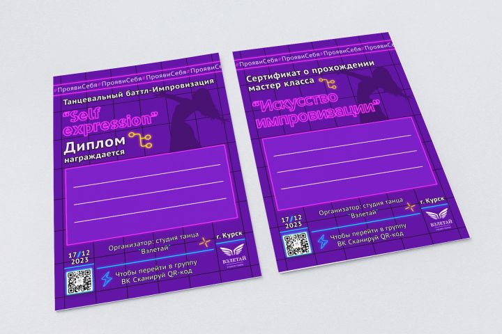 Диплом и сертификат для участников танцевального баттла "Self expression" и “Искусство импровизации”