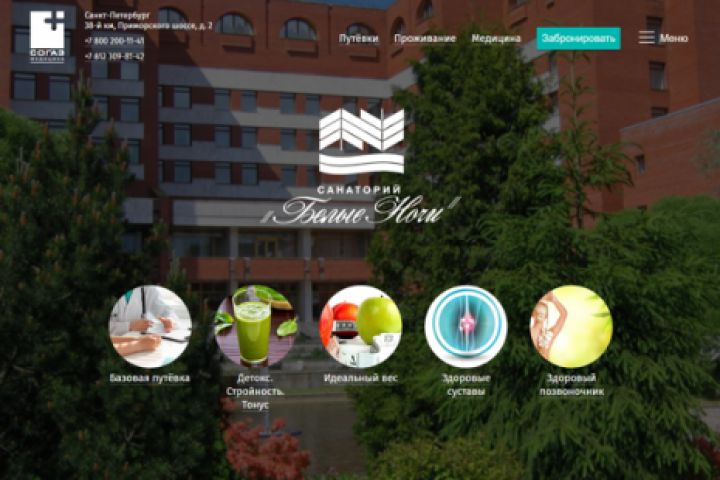 Сайт санатория "Белые ночи" от СОГАЗ. Ключевые моменты разработки: -Система управления 1С-Битрикс -Адаптивная верстка -Калькулятор расчета стоимости