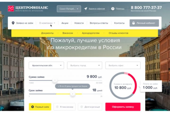 Официальный сайт МКК "Центрофинанс". Ключевые моменты разработки: