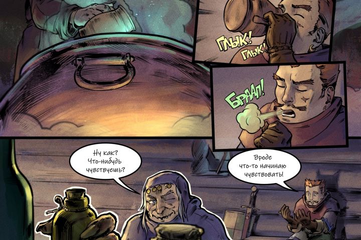 Страница комикса Ведьмино слово. Комикс в стиле фэнтези средневековья. Напечатан издательством Alpaca. Регулярный выпуск в авторском паблике Вк