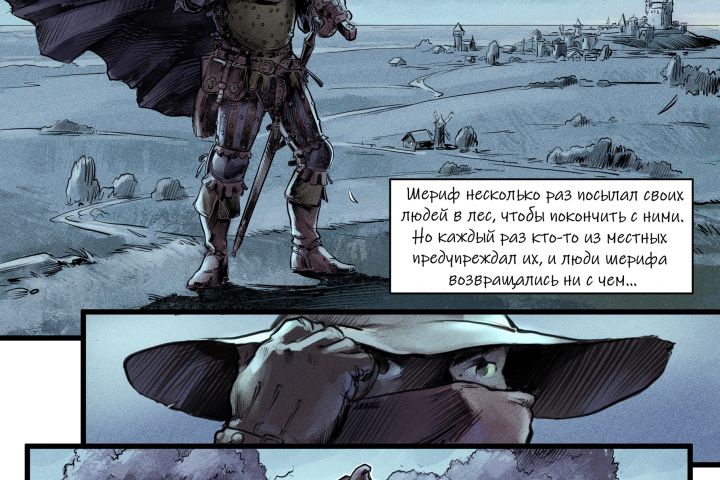 Страница комикса Охота на крыс. Комикс в стиле фэнтези средневековья. Напечатан издательством Alpaca. Регулярный выпуск в авторском паблике Вк