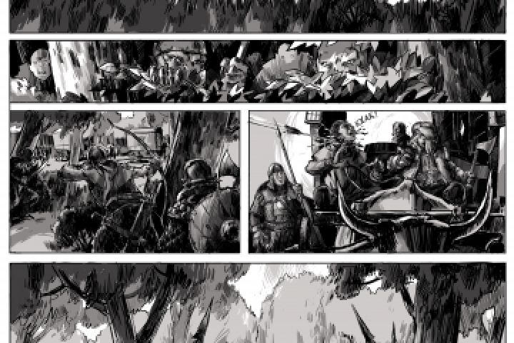 Страница черно-белого комикса. Фэнтези, средневековье