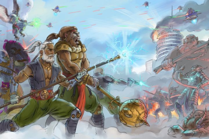 Концепт арт. Сцена битвы в фэнтези истории с индийской мифологией