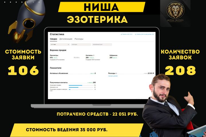 Я работаю не только с платным продвижением, но и выводим объявления в топ поисковых запросов различными методами.