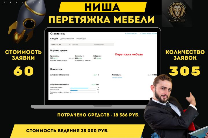 Я работаю не только с платным продвижением, но и выводим объявления в топ поисковых запросов различными методами.