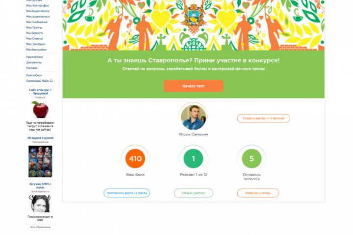 Приложение конкурс. Очки даются за правильные ответы, установку рекламной аватарки и за каждого приведенного друга в приложение ( можно рассылать приглашения прямо из приложения и если друг переходит по приглашению, то пригласившему начисляются доп. очки ). Также доп. очки за публикацию поста себе на стену из приложения.