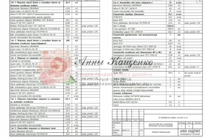 Рабочий проект 25сот, сводная спецификация материалов