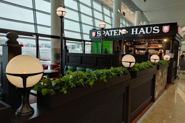 Проект SPATEN HAUS, реализованный в аэропорту Шереметьево, стал вызовом в рамках сложной инфраструктуры: необходимо было разработать бар, сочетающий яркий визуальный образ, технологическую грамотность и безупречную организацию пространства.
