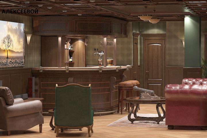 Классическая барная стойка завершающий штрих мужской гостиной.