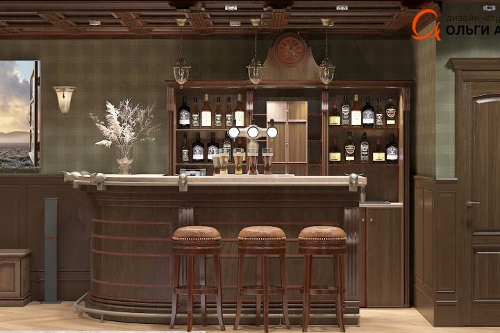 Классическая барная стойка завершающий штрих мужской гостиной.