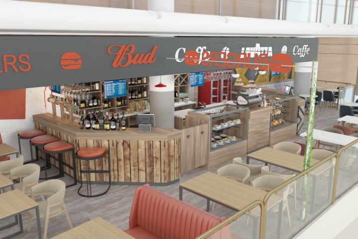 Мною спроектировано более 50 объектов разных форматов для Международного аэропорта Шереметьево, это кафе "Lavazza& BURGERS", площадью 135м2 ,будет располагаться в Терминале D, в настоящее время ведется авторский надзор и комплектация объекта.