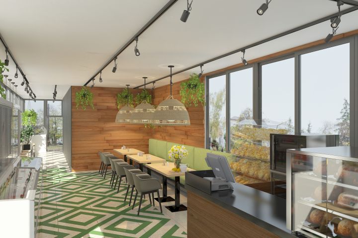 С Заказчиком воплотили идею нового формата торговли, магазин-кафе.Магазин получился уютный, с посадкой за стойкой и удобными диванами. В магазине будут продаваться замороженные полуфабрикаты, так как магазин-кафе открывается от мясокомбината. в оформлении использовала корпоративные цвета. Скоро открытие!