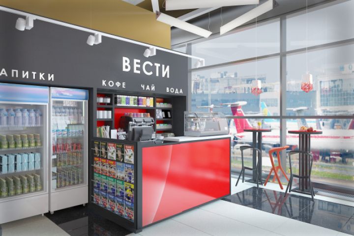 Так как новые магазины, планировалось расположить в новом Терминале B, мы интегрировали дизайн магазинов, в концепцию дизайна интерьера Терминала, который берет свое начало в великих идеях русского конструктивизма. Они созданы на основе простых и четких геометрических форм, насыщенных яркими позитивными цветами.