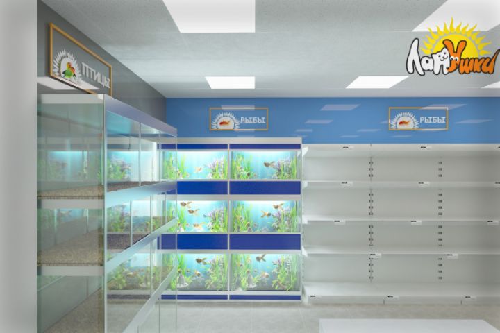 Дизайн-проект магазина разрабатывался удаленно, так как магазин находится в г. Нижний Новгород . Проект выполнен в короткие сроки, учтены все пожелания Заказчика. Мы разработали схему расположения оборудования, чертежи для изготовления стеллажей, кассового стола. Навигация, цветовое оформление зоомагазина так же разрабатывалась нашей студией.