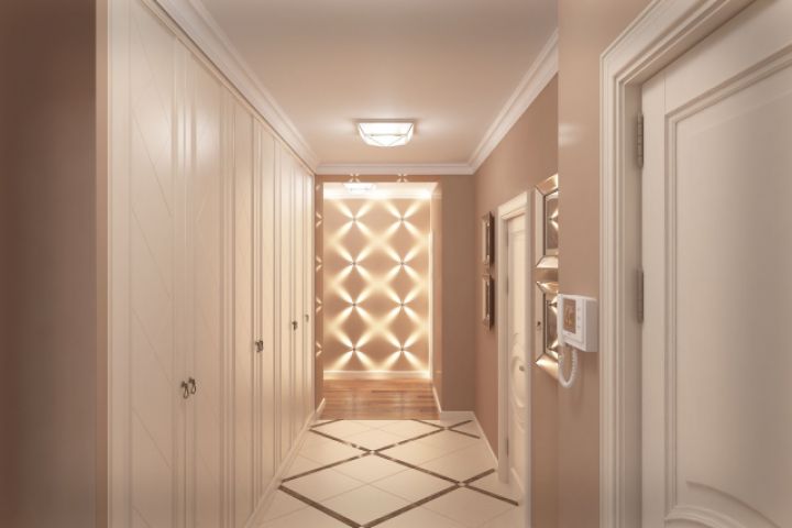 Дизайн-проект квартиры площадью 160м2, расположенной в подмосковном городе, разрабатывался для семейной пары с двумя детьми. Особенность квартиры наличие окон, из которых открывается великолепный вид на реку Волга. Стена в объединённой кухне-гостиной придает интерьеру плавность. Для оформления квартиры была выбрана современная классика. Удобное планировочное решение предусматривает наличие вместительного кухонного гарнитура, столовую, место для отдыха всей семьи. В Дизайне детской комнаты обращает на себя панно расположенное за изголовьем кровати. Спальню объединили с лоджией, и получилось функциональное пространство, включающее в себя кабинет, спальню и гардеробную. Комната для девочки получилась светлая, воздушная. В прихожей точечные настенные светильники расположили так, что обращают при входе в квартиру на себя внимание, к тому же красиво отражаются в зеркале, расположенном напротив стены со светильниками. Богатство оттенков создают запоминающееся декоративное решение.