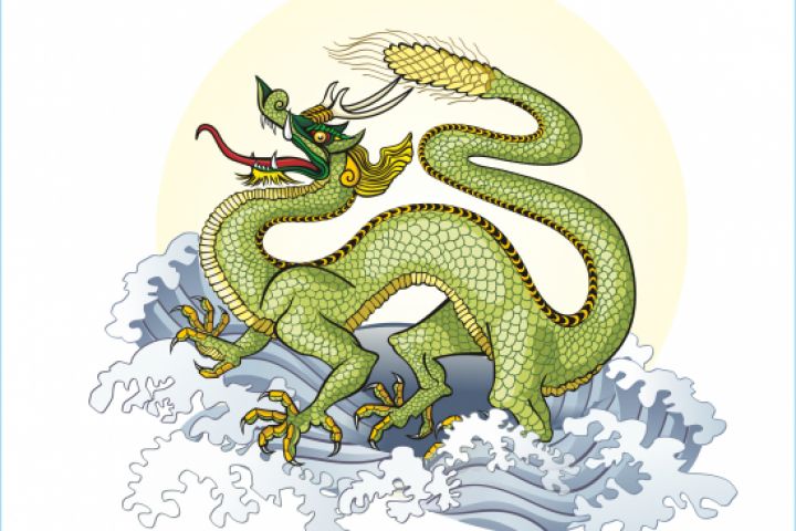 Дракон в стилистике китайской живописи. Оформление интернет портала по изучению китайского языка. Вектор