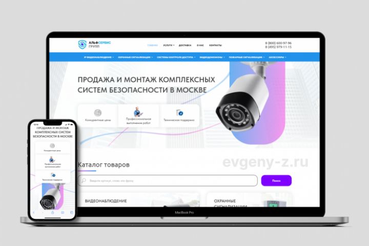 Разработка сайта по видеонаблюдению под ключ. Была разработанна структура сайта, фирменный стиль, логотип, дизайн, сверстан сайт под все виды устройства, сео оптимизирован по 15 параметрам, наполнен товарами и услугами, сверстан, зарегистрирован в поисковых системах.