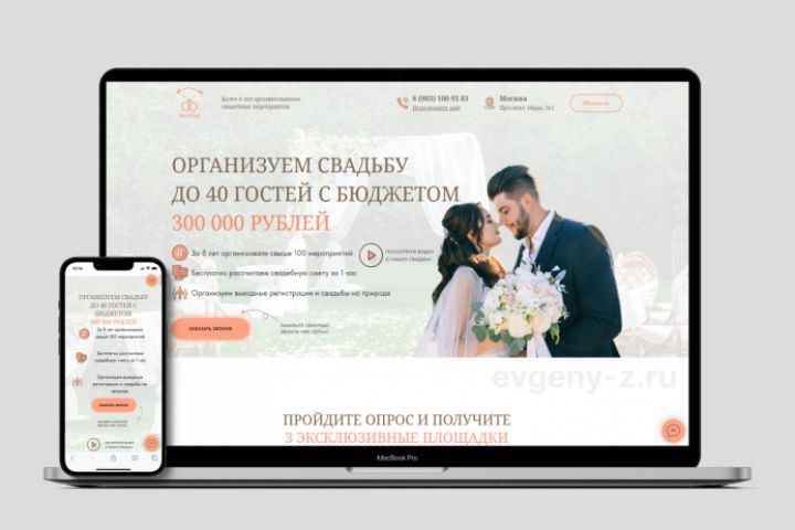 Для свадебного агентства был переработан дизайн сайта. Были подобраны новые шрифты, цвета, композиции. Работа осуществлялась по договору.