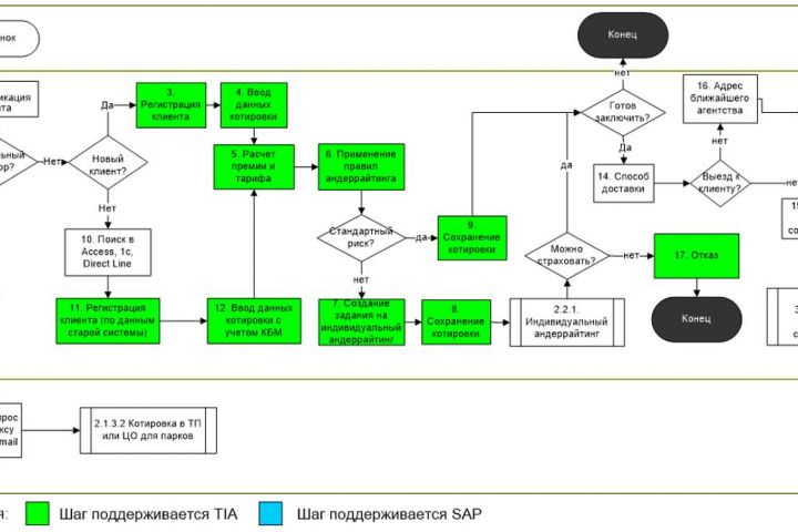 Описание бизнес-процессов одной линии бизнеса с целью последующего реинжиниринга и автоматизации. Было описано более 30 процессов от полисного учёта до процедур перестрахования