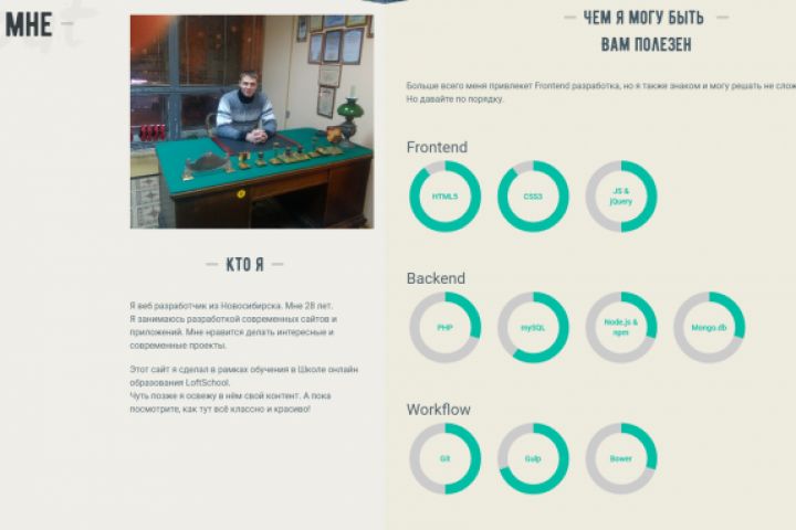 Технологичный сайт-портфолио выполненный в рамках обучения в Loftschool.