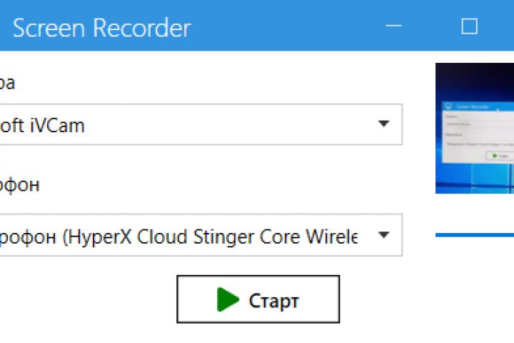 Программа для записи экрана и веб-камеры, разработанная на C# с использованием WPF, предназначена для записи видео в формате MP4 с кодеком H.264. Позволяет пользователям выбирать активную веб-камеру и микрофон, записывать изображение с экрана и веб-камеры одновременно, а также записывать звук. В интерфейсе предусмотрены выпадающие списки для выбора устройств и настройка уровня звука. Программа оптимизирована для работы с высокими разрешениями экрана, обеспечивает плавную запись без задержек и сохраняет файлы в формате, подходящем для загрузки на YouTube.