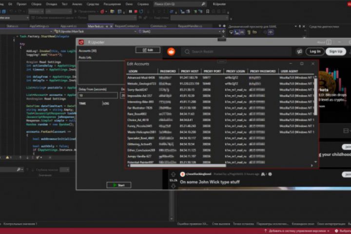 Application/Bot for automatic upvote on Reddit from multiple accounts.