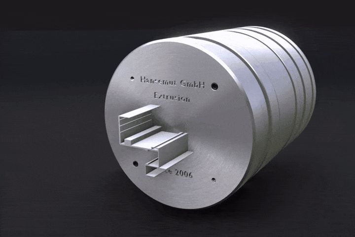 Animated process of extrusion aluminium profile for Hansemut GmbH Deutschland.