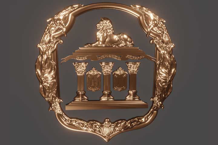 Разработка фамильного барельефа по эскизам и фотографии с учетом особенностей подготовки модели для дальнейшей фрезеровки из воска и литья в металл.