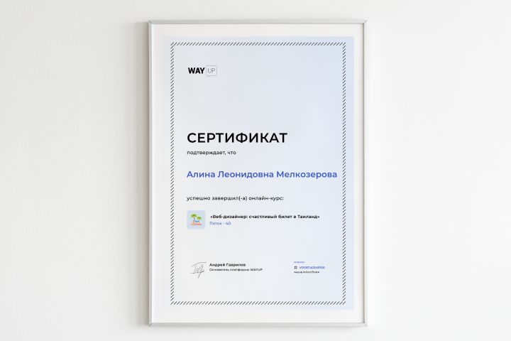 Сертификат "Дизайнер сайтов на Тильде PRO", TildaSchool
