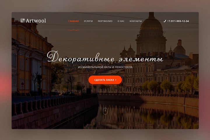 Представляю вашему вниманию landing page для компании ArtWool, которая занимается производством и монтажом декоративных изделий для фасадов зданий, преимущественно исторических. Цель лендинга сделать "Имя в сети", рассказать о компании и привлечь клиентов и инвесторов. Целевая аудитория, исходя из моего анализа, люди от 30 лет, предпочтительно мужчины, которые являются собственниками задний, либо реставрирующие компании. Лендинг сделан по моему прототипу, который вы можете посмотреть в разделы. На сайте представлена информация о компании, этапах работы. Благодаря декоративный элементов и шрифта дизайн передает стиль исторических зданий. Лендинг адаптивен и отображается во всех старых браузерах даже в EX 9. Технологии верстки: HTML5, CSS3, JS. Bootstrap 4, Angular, CMS ModX.
