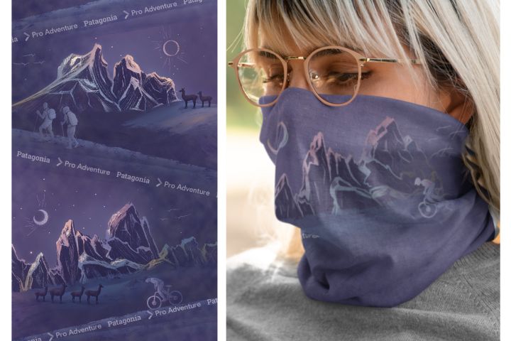Иллюстрация для мерча автрорского тура в Патагонию. Печаталась на открытках и бафах (шарфах)