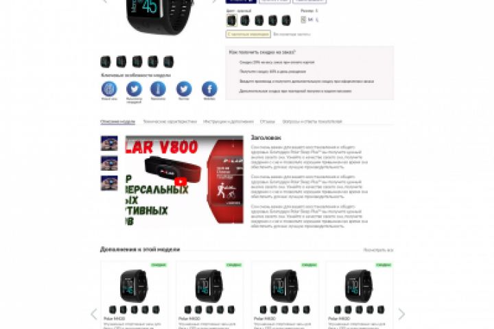 Дизайн интернет магазина по продаже спортивных часов OneSport. В ходе дизайна мной сначала были разработаны прототипы по проекту и далее прототипы были превращены мной в данный дизайн.