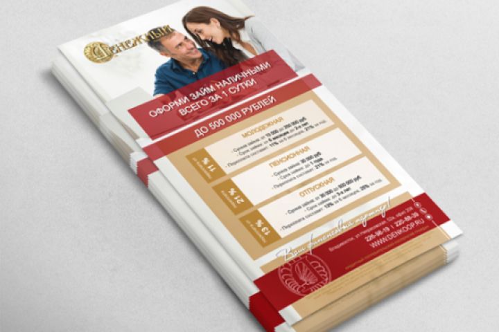 Копирайт, дизайн и верстка односторонней листовки формата "евро" для кредитной организации КПКГ "Денежный"