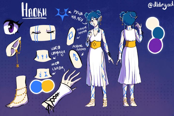 Концепт персонажа, вид спереди, вид сзади, цвета и детали