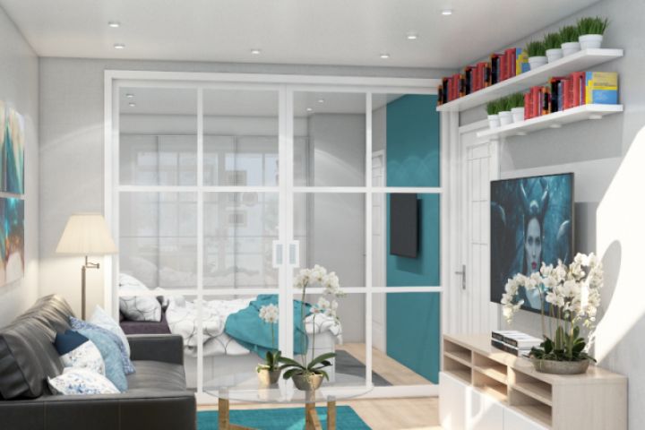Комнату разграничиваем на зону спальни и гостиной