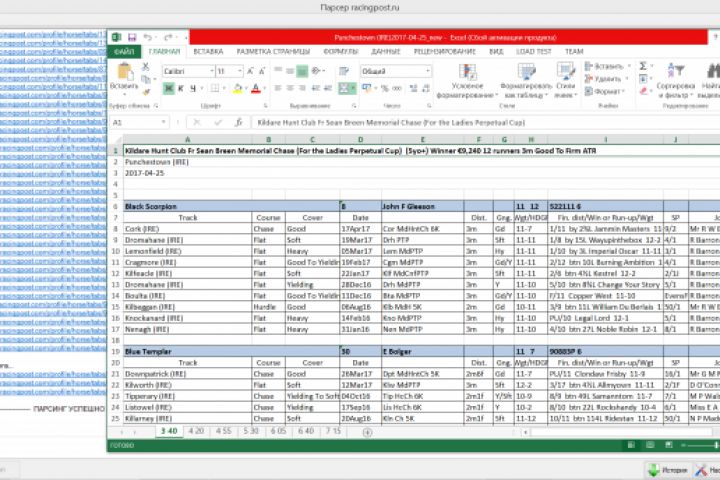 Выполняется парсинг сведений о забегах на заданную дату, сравнение с ранее сформированной историей, вывод в Excel-файл.