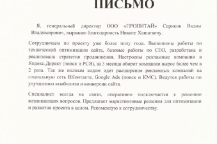 Официальная благодарность от ООО "Ай-Ти для всех"