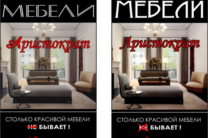 макет рекламы для салона мебели. Для последующей печати на баннере. Начало 2000х годов