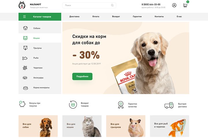 Интернет-магазин: МАЛАМУТ (ZOO товары для животных) Вёрстка: https://evgen.coderiz.pw/zoo-shop/