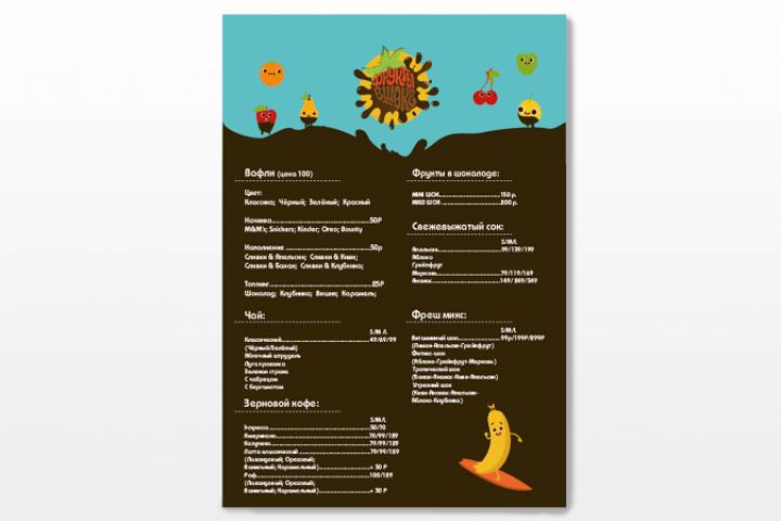 Вёрстка меню для кафе "Фрукты в шоке"